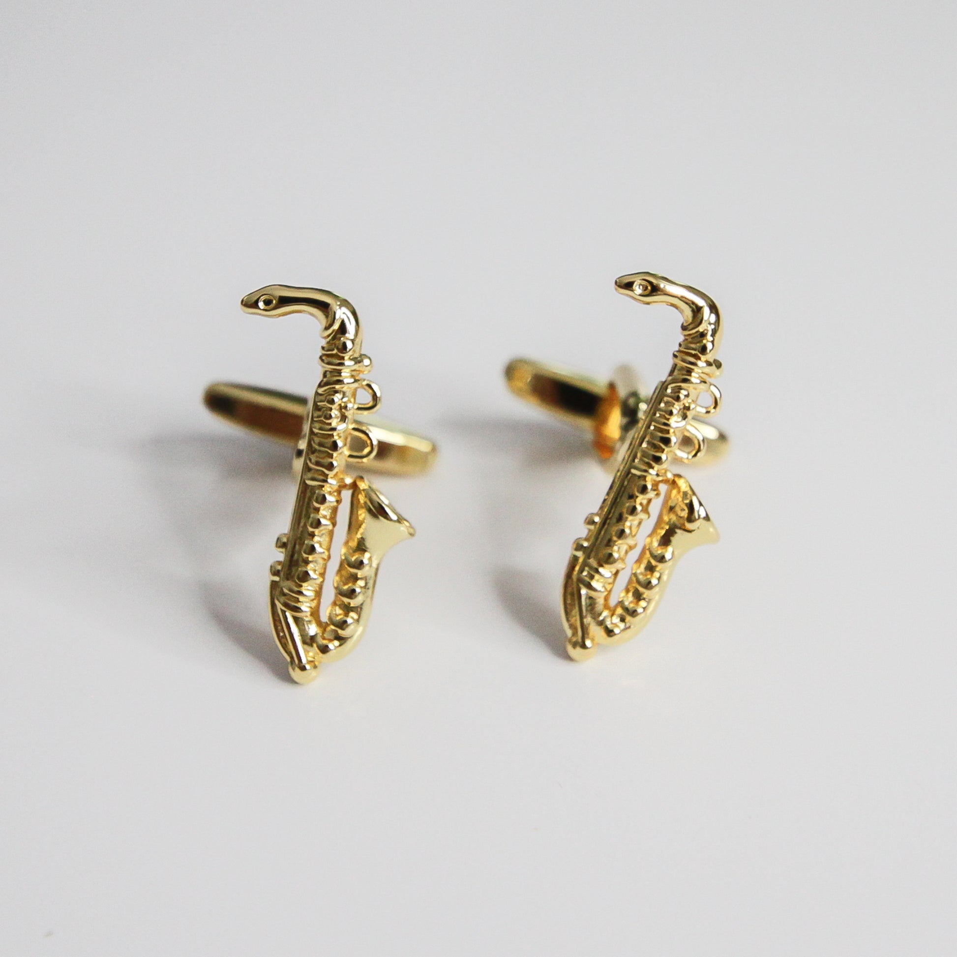 Hit all the right notes with these stylish gold saxophone cufflinks.
